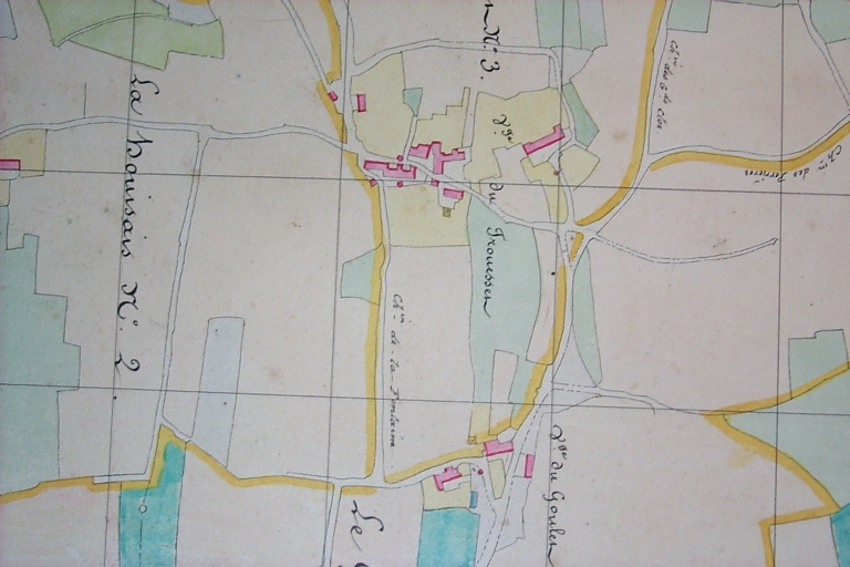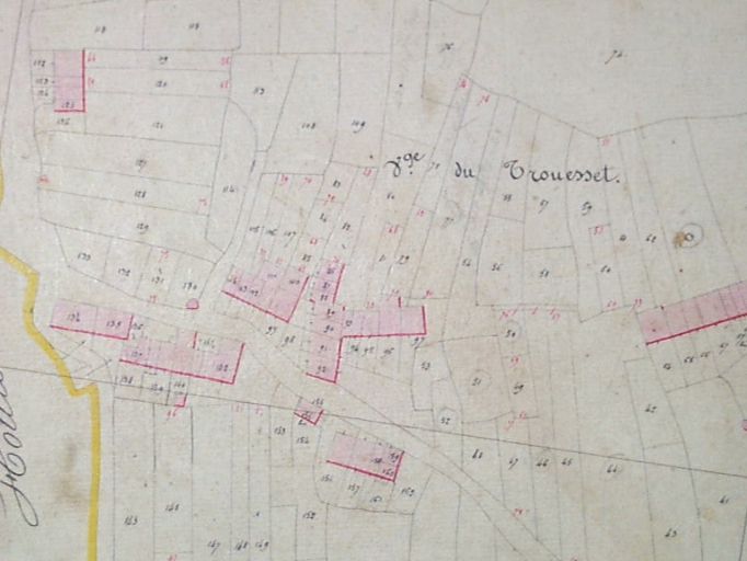 Implanté chaque côté d'une ancienne voie qui devait relier le Bois-Denats à la Roche-Cotherel, le hameau du Trouesset a conservé son tissu originel . cette succession d'alignements aspectés au sud suggère une exploitation partiellement communautaire des terres, selon le système de la frairie fréquente dans le pays de Redon.