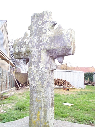 Cette croix taillée dans un monolithe de schiste bleu présente un fût carré chanfreiné (de section octogonal). A l'intersection d'avec la traverse une forme circulaire redentée évoque une croix palis enchâssée dans la masse. Il semble qu'à l'origine, la croix était fichée dans la terre, maintenue à la verticale par la dalle de schiste (retaillée) qui forme aujourd'hui le sommet du socle en moellons.