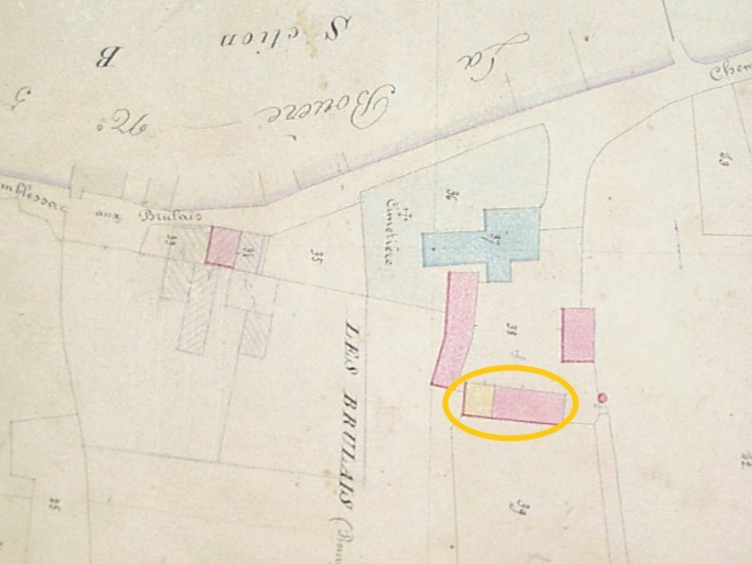 Plan cadastral napoléonien. Section D, quartier n°1 dit de l'église, échelle 1/1000e. Mairie des Brulais. s.d.
