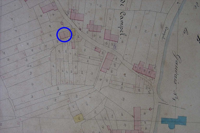 Plan cadastral napoléonien. Section D, quartier n°4 dit le Bourgneuf, échelle 1/2000e. Mairie de Campel. 1836.