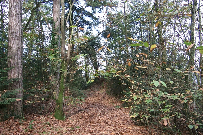 Ligne de défense d'un promontoire surplombant l'Aff de plus de 70 mètres, cette grande levée de terre entamée par la construction du château moderne serait le vestige d'un camp romain.