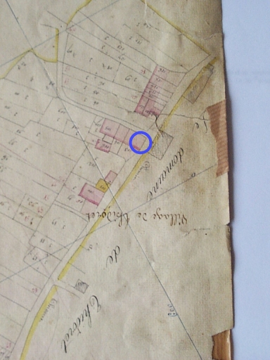Saillant sur la route (noter le traitement d'angle), cet étroit logis composé d'une salle et d'une chambre à l'étage, est situé à l'extrémité d'un alignement dont il semble être un corps annexe.