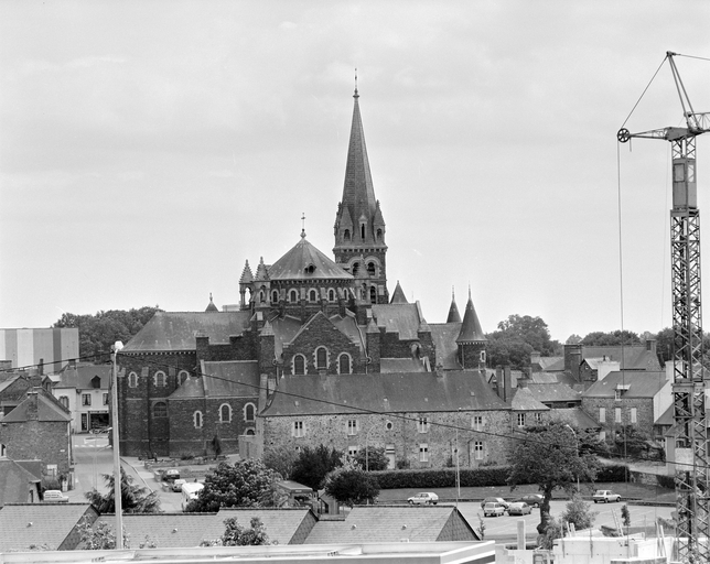 Eglise imposante composée de multiples volumes associés. Plan de type complexe proche du plan centré. Coupole en brique. Gros oeuvre en schiste avec baies en pierre calcaire. Flèche en maçonnerie.