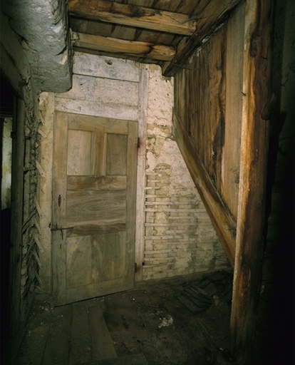 Logis avec soubassement. Salle lambrissée (traces). Coffrage cheminée, porte et volets d'époque. Très beau perron en schiste.