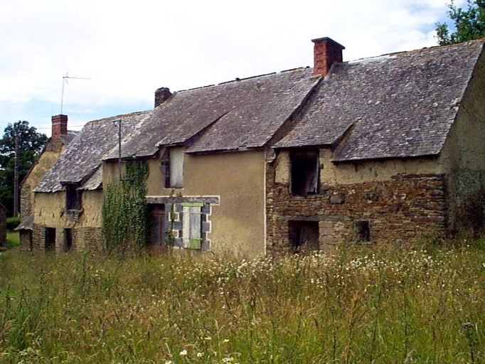 Maison élémentaire à une pièce dominant, au centre d'un alignement, un ancien logis à l'ouest et une étable ou un cellier à l'est. Noter sur les ouvertures la combinaison du palâtre de bois traditionnel formant linteau et des montants en schiste bleu (de la Gacilly ?).