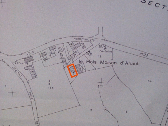 - PHYPO Parti inhabituel : porte et gerbière en pignon, pièce à feu toute en longueur, éclairée par un petit jour à l'ouest.