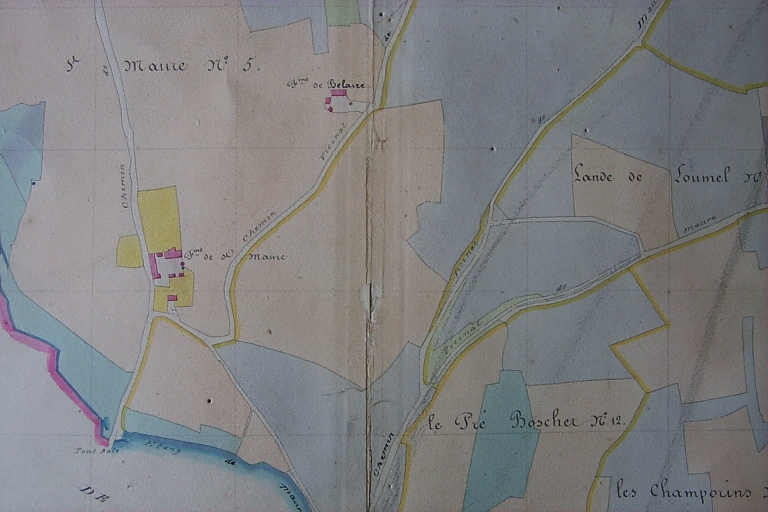 Plan cadastral napoléonien, section E du quartier dit de Saint-Maure n°5, échelle 1/2000e. Mairie de Mernel. Non daté (1836).