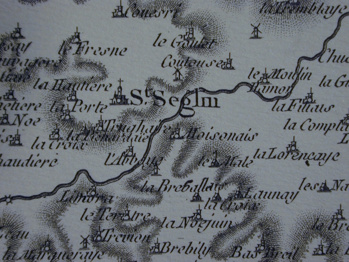 Le géographe Ogée donne vers 1780 un aperçu du territoire, "couvert d'arbres fruitiers et de buissons, [qui] renferme des terres en labour de bonne qualité, des prairies, des landes, et le bois de la Sauvagère". Marteville complète au milieu du XIXe siècle cette description succincte par quelques chiffres : sur une superficie de 939 hectares, on compte 441ha. de labours, 112 ha. de prés et pâtures, 40 ha. de prés et jardins, 18 ha ; de bois, enfin 295 ha. de landes et terres incultes.Le Moulin à vent de Saint-Séglin, situé sur une lande au nord de la Violais, était peut être encore en activité à cette époque.
