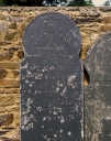 Vestige de l'ancien cimetière paroissial, cette dalle funéraire taillée dans un palis de schiste porte, gravée, l'inscription suivante : CY GÎT LE CORPS DE/MISSIRE IAN GICqUEL/ RECTEUR DE CETTE/PAROISSE AGE DE 79/ ANS INHUMÊ LE/19 DECEMBRE 1811/PRIEZ DIEU POUR/LUI Au dessus, sont figurés en relief un motif en rosace surmonté d'un calice avec une hostie marquée d'une croix cantonné de deux burettes surmonté d'une étoile. Au dessous, une tête de mort et deux os en X