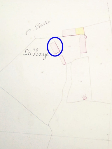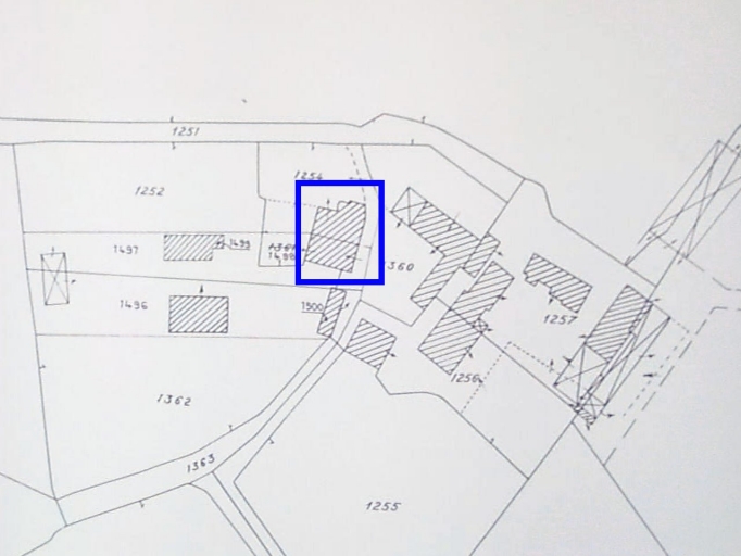 Son important gabarit désigne ce logis de ferme comme la demeure d'un riche laboureur. Distinct des bâtiments d'exploitation organisés autour d'une cour carrée qu'il ferme au nord, l'édifice adopte un plan de type ternaire comprenant de nombreuses pièces : cuisine et salle au rez-de-chaussée de part et d'autre d'un couloir central contenant l'escalier qui permet d'accéder aux chambres situées à l'étage. A une date inconnue, le bâtiment à été partagé en deux logements indépendants et une porte ouverte à la place de la fenêtre est à cet effet. Ce modèle daté, à la fois précoce et peu fréquent dans la commune, est une oeuvre de référence.