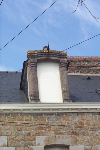 Logis homogène ; maçonnerie en petit appareil ; belle lucarne ; curieuse date regravée(?) sur un linteau de porte sur le pignon ouest : 1582 et une croix [sur la droite]