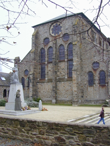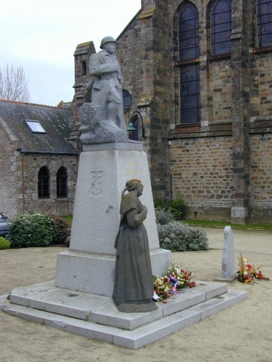Partiellement détruit par les bombardements en 1944, le monument est dessiné par l'architecte René Aillerie de Dinard ; la statue de la femme est réalisée par le sculpteur Nicot ; la statue du poilu reconstituée en 1961 par le sculpteur Delahaie de Saint-Lunaire remplace celle de Nicot.