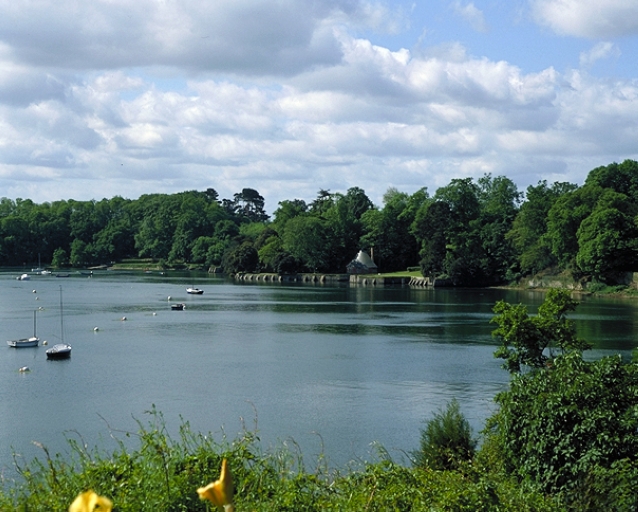 Façades et toitures du château et des communs, y compris le portique à l'entrée de la cour d'honneur ; boiseries de la salle à manger ; boiseries, plafond et parquet du grand salon ; cour d'honneur ; terrasses, parterres et jardins bordant la Rance (cad. C 615, 617, 621 à 624) : classement par arrêté du 20 juillet 1966. Ensemble du parc comprenant les murs de clôture, le parc (à l'exclusion des parties précédemment classées), les murs de quai avec les pavillons subsistant et la rabine d'accès (cad. C 616 à 620, 623a, 623c, 624, 1548, 1983 ; ZH 84) : classement par arrêté du 2 mai 1995 ; site inscrit.