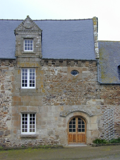 Probablement édifié à la fin du 16e siècle, ce logis de petit manoir [le colombier est détruit] présente tous les caractères d'une demeure soignée : recherche d'une ordonnance, mise en oeuvre du matériau, traitement de la lucarne notamment. Les cheminées de la salle et de la chambre à l'étage portent des armoiries sur le linteau : un écu avec un chêne feuillu déraciné au centre.