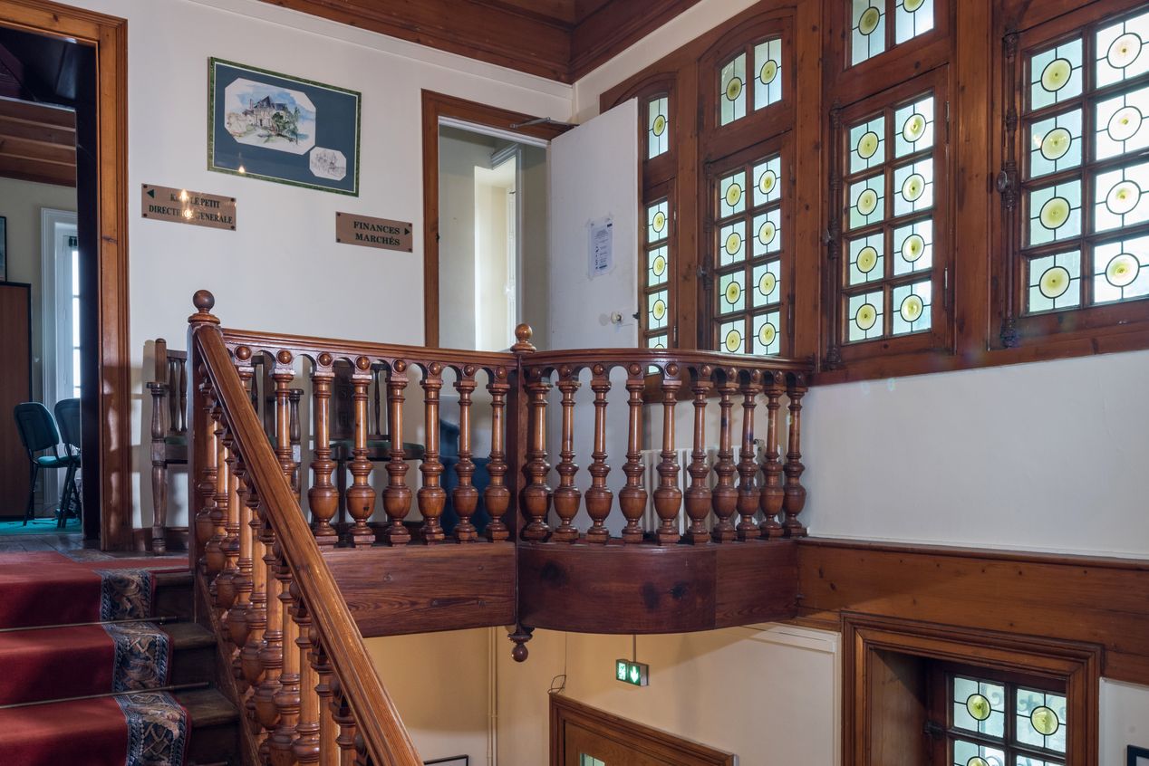 La mairie de Saint-Lunaire occupe depuis 1967 le Castel construit en 1883 par l’architecte promoteur Aimé Sauffroy (1840-1907), qui domine le boulevard maritime et affiche avec brio et ostentation de multiples décors : toitures complexes, évocations médiévales, incrustations colorées de céramique dont un large aplat jaune cerné de bleu outremer. Des citations au-dessus des portes, « Heureux celui qui touche au port », « Icy soyez les bienvenus » participent à cette gaieté que l’on attend d’un lieu de villégiature. Cette liberté dans la composition et ces emprunts épars juxtaposés expriment pleinement l’éclectisme balnéaire.