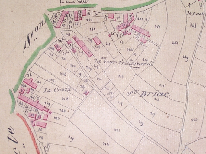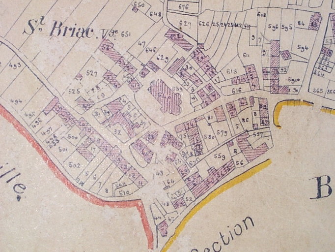 Feuille cadastrale de la ssection A1 dite du bourg. Levée par Bessin géomètre en 1828, échelle 1/2500e. (Mairie de Saint-Briac-sur-Mer).