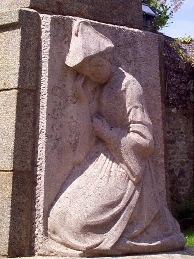 Deux panneaux en bas-relief en béton moulé sont apposés à une stèle en granite. Ces deux sculptures sont l'oeuvre de Armel Beaufils. Elles représentent les bustes d'un marin et d'un poilu ; une briacine agenouillée en costume traditionnel masquant sa douleur.