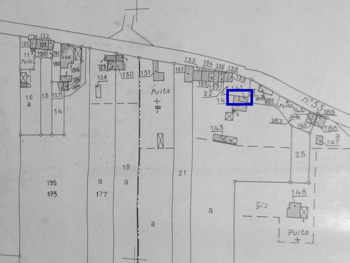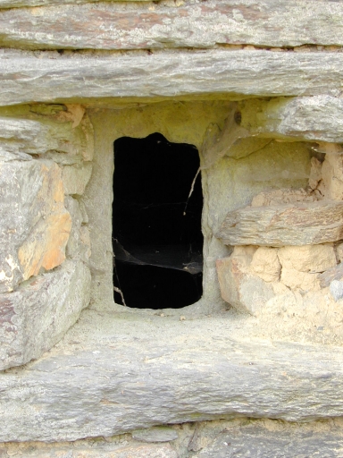 Maison élémentaire vraisemblablement remployée en dépendance agricole à la construction du logis en alignement au sud. Elle conserve deux beaux jours taillés dans une dalle de schiste pour éclairer la salle et le grenier.
