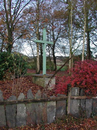 Croix en bois du milieu du 20e siècle(?) sur une base maçonnée.
