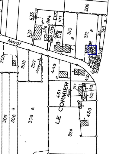 Logis à fonctions combinées (Hommes et animaux sous le même toit) construit sur les fondations d'un bâtiment plus ancien dont il remploie une partie du mur en façade sud (la partie ouest présente un appareil assisé) et un linteau en schiste mouluré.