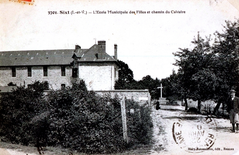 3701. Sixt (I.-et-V.) -L'Ecole Municipale des Filles et chemin du Calvaire, carte postale, E. Mary-Rousselière édit., Rennes, [s.d.] (collection particulière).