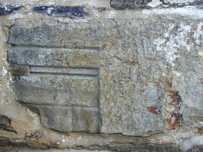 Logis élémentaire construit au début du 19e siècle remployant une pierre plus ancienne dans le montant gauche de la porte.
