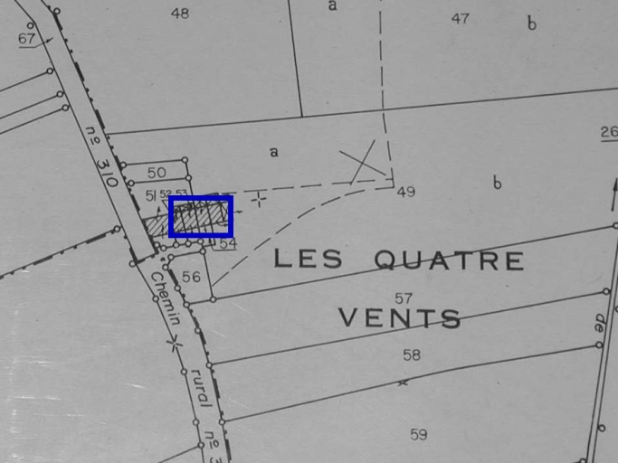 Ce curieux alignement de logis est unique dans la commune. Il semble s'agir d'un logis double (deux unités familiales vivent sous le même toit) avec une dépendance ou une chambre au centre (pièce sans cheminée). L'unité ouest à subit l'habituelle inversion porte-fenêtre.