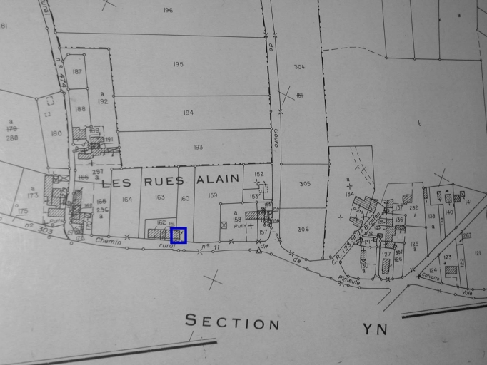 Ce logis élémentaire à une pièce caractéristique du modeste l'habitat rural du sud du département d'Ille-et-Vilaine à la limite des 19e et 20e siècles a subi l'habituelle inversion porte-fenêtre lors de la séparation de l'édifice en deux propriétés distinctes.