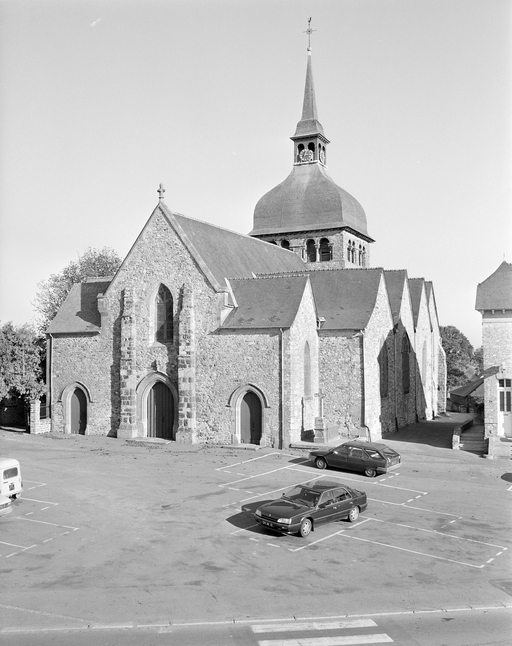 Prieuré fondé en 1023 dépendant de l'abbaye Saint-Florent-de-Saumur. L'église du 11e ou 12e siècle a été transformée à maintes reprises. Le bas-côté sud, achevé en 1537 (porte la date) a remplacé l'ancien collatéral roman. La façade ouest a été reprise également au 16e siècle. Le clocher formant à l'origine tour-lanterne a été remanié au 18e siècle. L'édifice a subi des modifications également au 19e siècle : sous la direction d'Aristide Tourneux en 1847 pour la sacristie, ainsi qu'en 1863 et 1864 pour le choeur. Le bas-côté nord a été construit en 1887 et 1888 par Aristide Folie (dates et attributions par travaux historiques) .