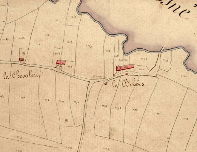 Plan cadastral napoléonien. Section B dite du Haut Chemin, 2e feuille. Levée par M. Cheval, géomètre, 1826, échelle 1/2500e. (A.D. Ille-et-Vilaine).