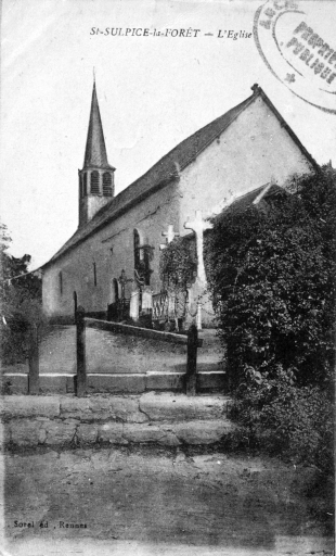 L’église, nommée Saint-Sulpice en raison de la piété inspirée par l’évêque de Bourges du VIIème siècle, doit son origine à l’abbaye. On suppose que sa fonction originelle était d’être une chapelle : pour les besoins des vassaux ou des moines. Un texte attribué à l’évêque Pierre de Dinan, datant de la toute fin du XIIe siècle, déclare paroissiale « l’église du bourg de Saint-Sulpice et l’église de Serigné ». Selon le pouillé historique de Rennes, la paroisse fut d’abord administrée par les frères Condonats. La paroisse est supprimée en 1803 après le concordat et unie à celle de Chasné, pour être enfin rétablie en 1820.
