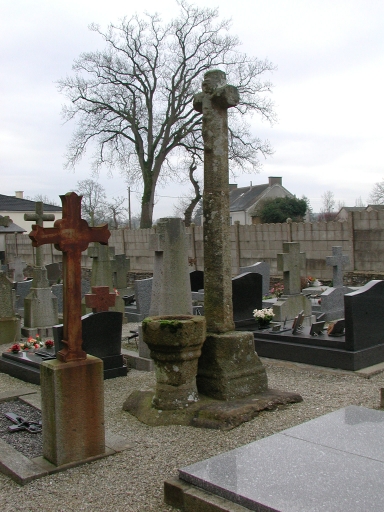 Croix du 16e siècle à haut fût, portant un Christ en croix en demi-relief, sur une base quadrangulaire aux angles abattus ; ancien bénitier probablement contemporain de belle facture. Date d'un remaniement gravé dans le ciment : 31/10/58