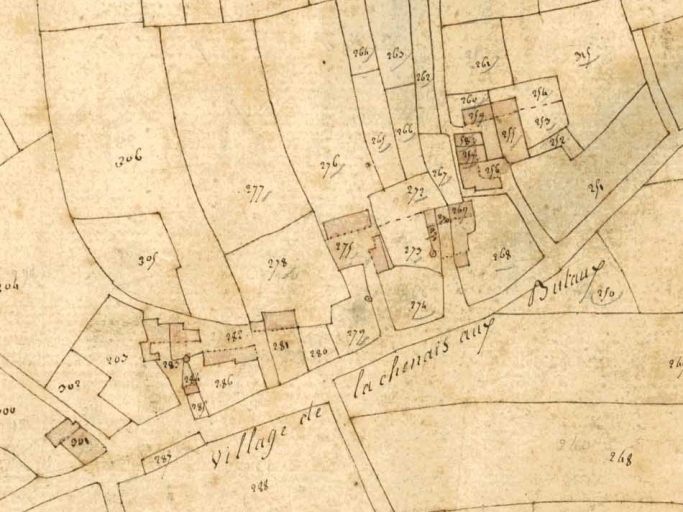 Sur le plan annexé, tous les ouvrages représentés en bleu sont très fortement remaniés depuis leur édification avant et après la réalisation du cadastre en 1826. Un ouvrage est détruit puis reconstruit.
