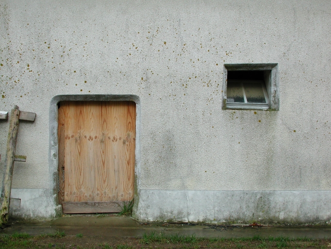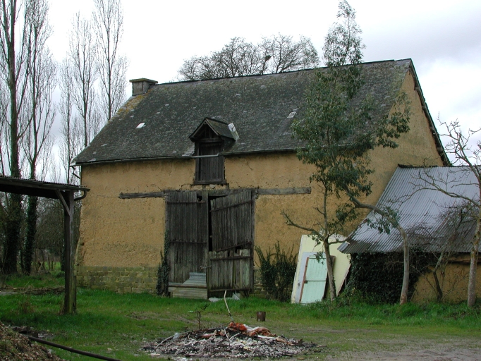 Imposant ouvrage du patrimoine vernaculaire conservé profondément modifié en façade principale ; une porte et une fenêtre du 16e siècle(?) en remploi ; agrandissement au milieu du 19e siècle.
