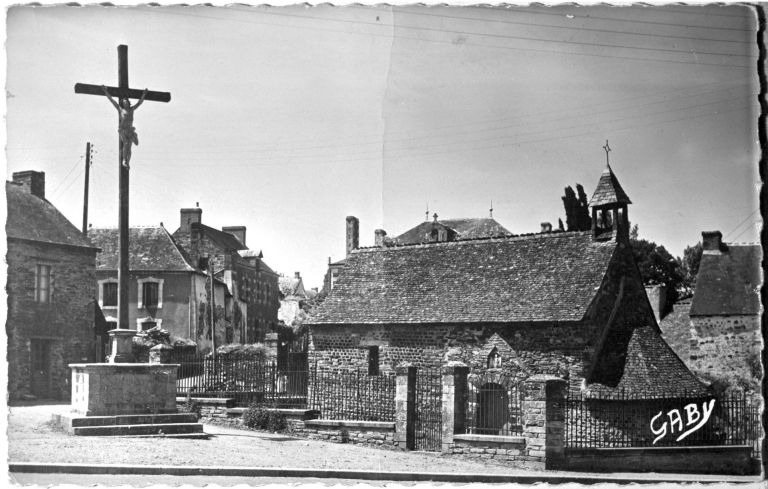 LANGON (I.-et-V.). Le calvaire et la chapelle Ste-Agathe. Carte postale, Gaby : [s.l], [s.d], (Archives départementales d'Ille-et-Vilaine : 6 Fi).