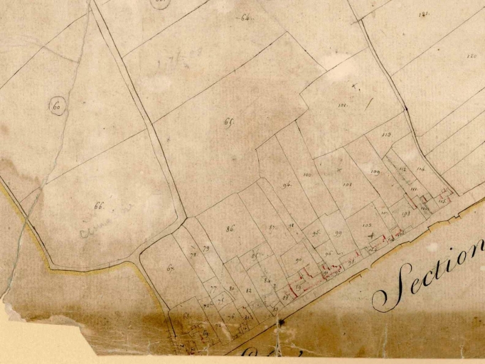 Commune de Liffré. Plan cadastral. Section B dite du Bourg, 1ère feuille. Plan, 1827, échelle : 1/2500e. (A.D. Ille-et-Vilaine).