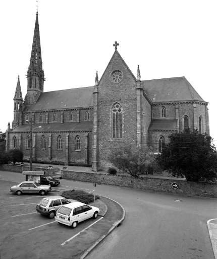 Plan en croix latine ; 3 vaisseaux ; voûte d'ogives. Décor : vitrail ; sculpture. Représentation : armoiries ; Christ en majesté ; le tétramorphe. Toit à longs pans ; noue ; pignon découvert ; flèche en maçonnerie. Dans la tradition du gothique archéologique.