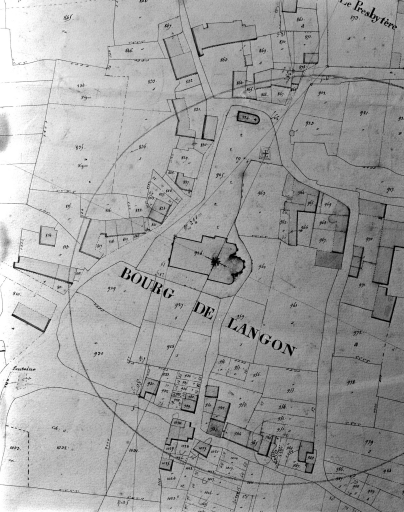 Concentré à l'ouest de la Grande Rue en longeant le placître et autour de quelques constructions importantes au début du 19e siècle, le bâti du bourg de Langon s'est développé à la fin du 19e siècle, notamment au sud de l'église paroissiale. A cette époque, puis au début du 20e siècle, les bâtiments donnant sur la place sont restaurés tandis que le village s'étend au nord, en direction de la gare. L'accroissement du village, bloqué à l'est par la présence de la voie ferrée, se poursuit au 20e siècle, en particulier au nord et à l'ouest du centre ancien.