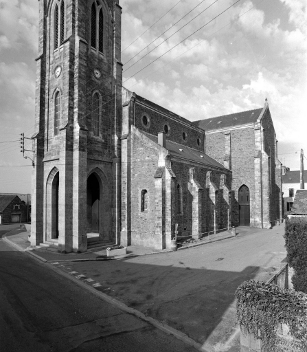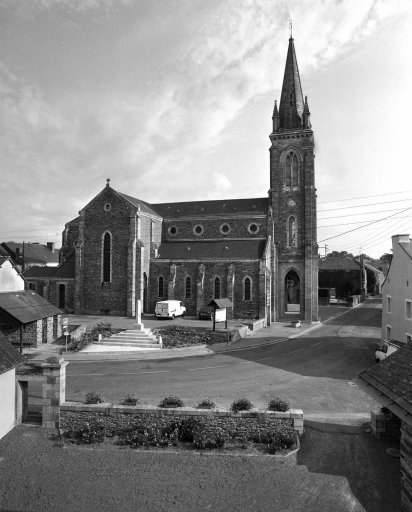 L'ancienne église datait principalement du 12e siècle et du 15e ou 16e siècle. Elle se composait d'une nef accostée de deux chapelles privées, au nord celle des seigneurs des Brossais, au sud celle des seigneurs du Petit Bois, qui furent transformées plus tard en collatéraux. La façade ouest était précédée d'un porche à piliers carrés supportant une claire-voie en bois. L'église actuelle fut construite sur les plans de l'architecte E. Dupuis, établi à Redon (cérémonie de la pose de la première pierre en 1869). Le clocher-porche est construit en 1895 sur les plans d' Henri Mellet.