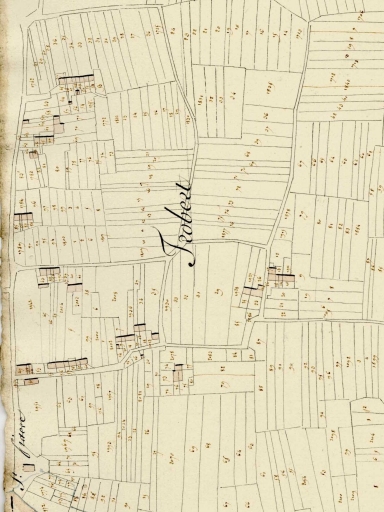 Plan cadastral dit napoléonien. Section F de Trobert, 2e feuille, échelle 1/2500e, 1818. Archives départementales d'Ille-et-Vilaine, Rennes.