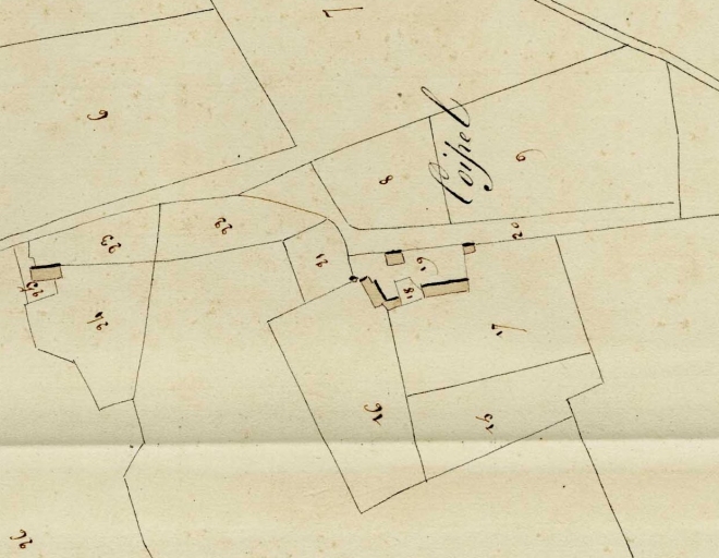 Plan cadastral dit napoléonien. Section F de Trobert, 1ère feuille, échelle 1/2500e, 1818. Archives départementales d'Ille-et-Vilaine, Rennes.