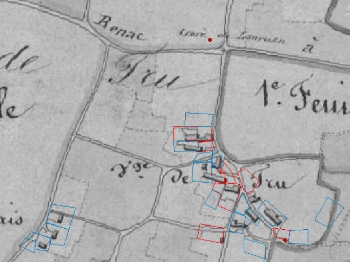 Feuille cadastrale de la section K2 dite de Tru, par Leblanc géomètre, [1847], échelle 1/1000e (A. D. d'Ille-et-Vilaine : 3P 5268).