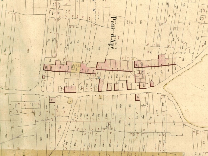 Cet important alignement de logis est le plus grand de la commune. En partie détruit aujourd'hui, il représente la quasi-totalité de la partie construite du hameau du Pont d'Apé. Caractère unique sur la commune, il propose une disposition atypique des dépendances agricoles perpendiculaires à l'alignement.