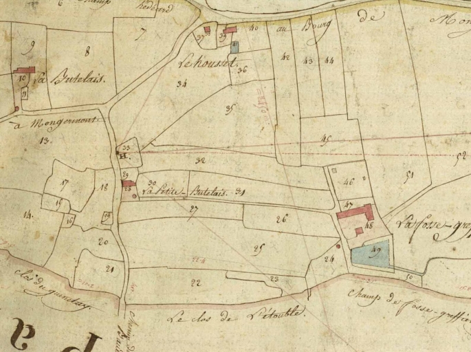 Extrait du cadastre de 1814, le Housset, la Bretelais, la Fosse Greffier (A.D.Ille-et-Vilaine : 3 P 5417).