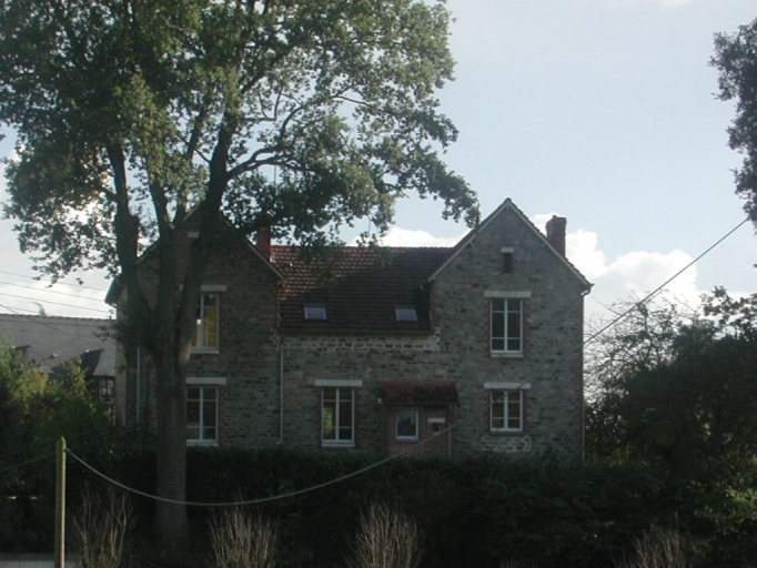 Corps rectangulaire avec deux avancées latérales formant deux façades pignons recouvertes d'une demi croupe. Encadrement des baies et bandeaux horizontaux en brique. Epi de faîtage en céramique.
