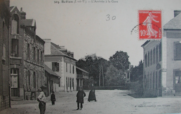Betton. (I.-et-V.). Le Carrefour, près de la Gare. Carte postale, Rennes : J. Sorel, édit. (coll. part.).