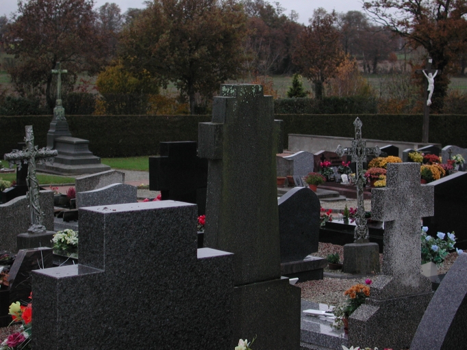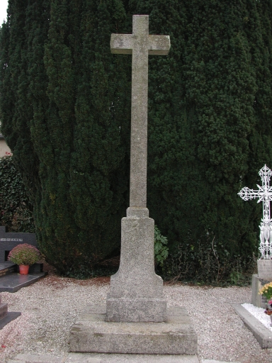 Précédemment situé autour de l'ancienne église paroissiale Saint Joseph, Le cimetière est transféré en ce lieu le 29 novembre 1865. Il a été agrandit par la suite d'une parcelle supplémentaire. Deux croix signalent ces différentes étapes. Une croix de cimetière en granite dont le socle porte la date de 1870 et une croix de mission ? de la 1ère moitié du 2Oe siècle qui semble avoir été déplacée dans la partie neuve du cimetière. Au centre du cimetière se détache le tombeau de M. MAIGNANT, recteur de la paroisse décédé en 1899. Intérêt communal.