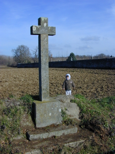 Cette croix de chemin a été érigée en ex-voto par la famille Marandet, comme l'atteste linscription gravée sur le socle : ERIGE/A LA MEMOIRE DE Fois/HARAND ET DE Foise REUZE/SON EPOUSE PAR LEURS/ENFANTS LE 6 Xbre 1869.