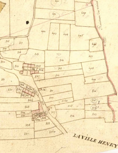 Plan cadastral napoléonien. Section D dite de PIRIEUC, 1ère feuille, échelle 1/2.500 Levée par Roger. Archives départementales d'Ille-et-Vilaine 3P.