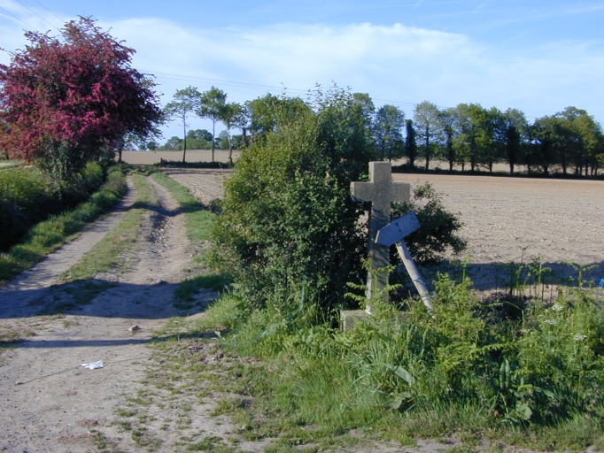 Cette croix dédiée AU CHRIST-ROI, dédicace gravée sur la traverse, a été érigée en ex-voto par des particuliers à la suite d'un voeu, comme l'indique l'inscription gravée sur le socle : Reconnaissance/FAMILLE/COUVERT-LIZION/1945.